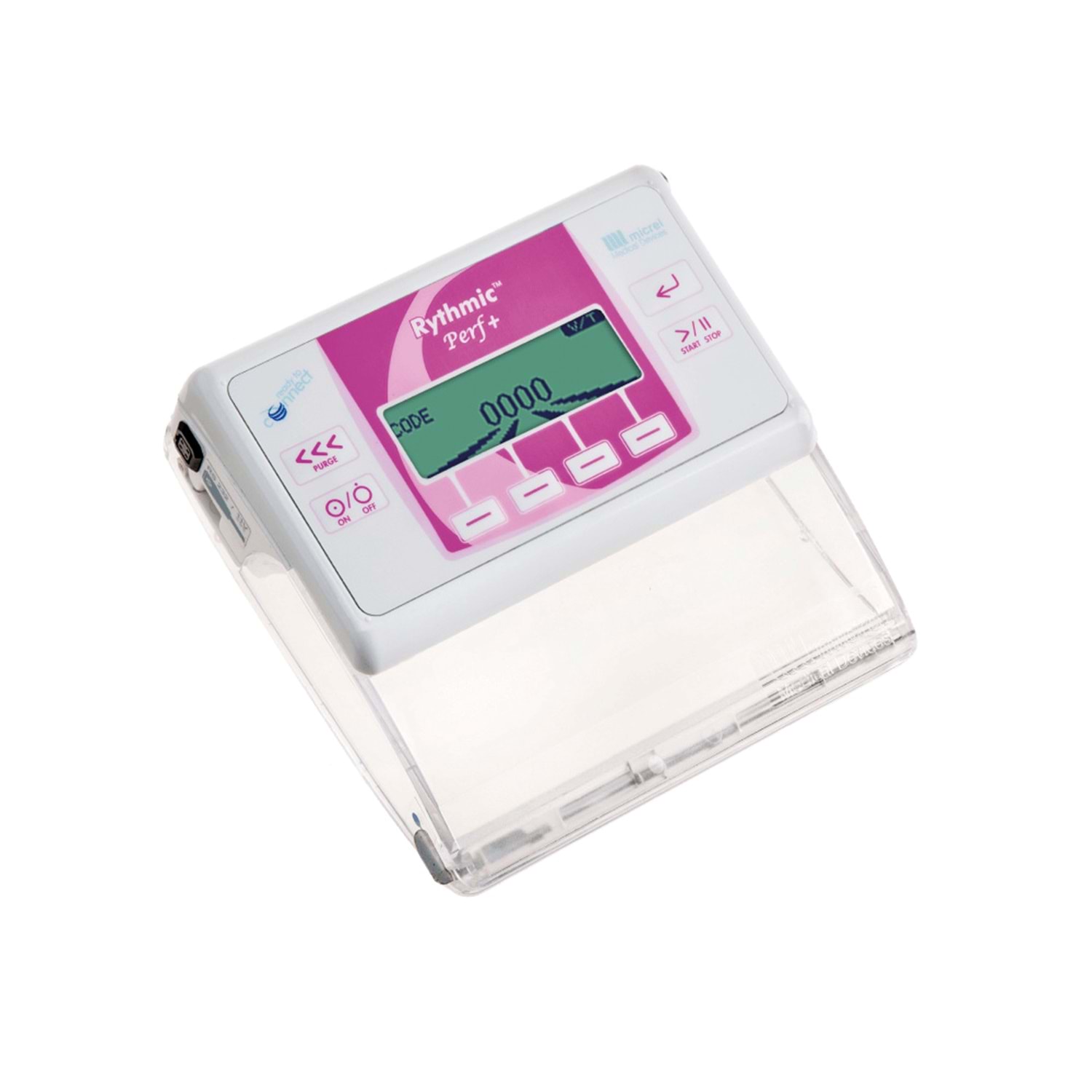 Micrel Rythmic Perf+, hastane ortamında veya evde bakım süreçlerinde hastaların mobilite özgürlüğünü kısıtlamadan güvenli infüzyon tedavisi alabilmeleri için geliştirilmiş ambulatuvar (taşınabilir) bir infüzyon pompasıdır. Sürekli (Continuous), Aralıklı (Intermittent), Hacim/Zaman (V/T), Hacim/Akış (V/R) ve Otomatik Rampa (Auto Ramp) gibi çok yönlü infüzyon modlarını destekleyerek antibiyotik tedavisi, ağrı yönetimi ve diğer paranteral uygulamalar için esnek çözümler sunar. Kompakt tasarımı, hastanın cihazı özel taşıma çantaları ile vücut üzerinde veya omuzda rahatsızlık hissetmeden taşımasına olanak tanır.