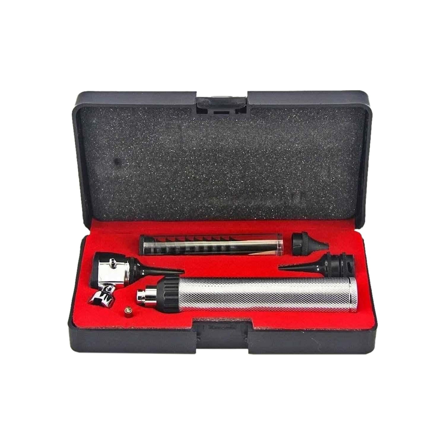 Otoskop seti 1 adet tutma kolu, 1 adet otoskop başlığı ve 2 boy spekülüm içerir.
